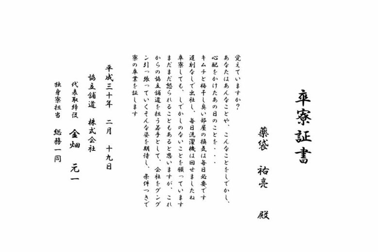 3月222019 スタッフブログ 卒寮おめでとう!! スタッフブログ投稿者:協立舗道株式会社2019年3月22日 協立舗道では新卒者や、まだ若い転職者の人は本社の3階の社員寮に入ります。 柴ちゃんの美味しい手料理を… 記事を読む
